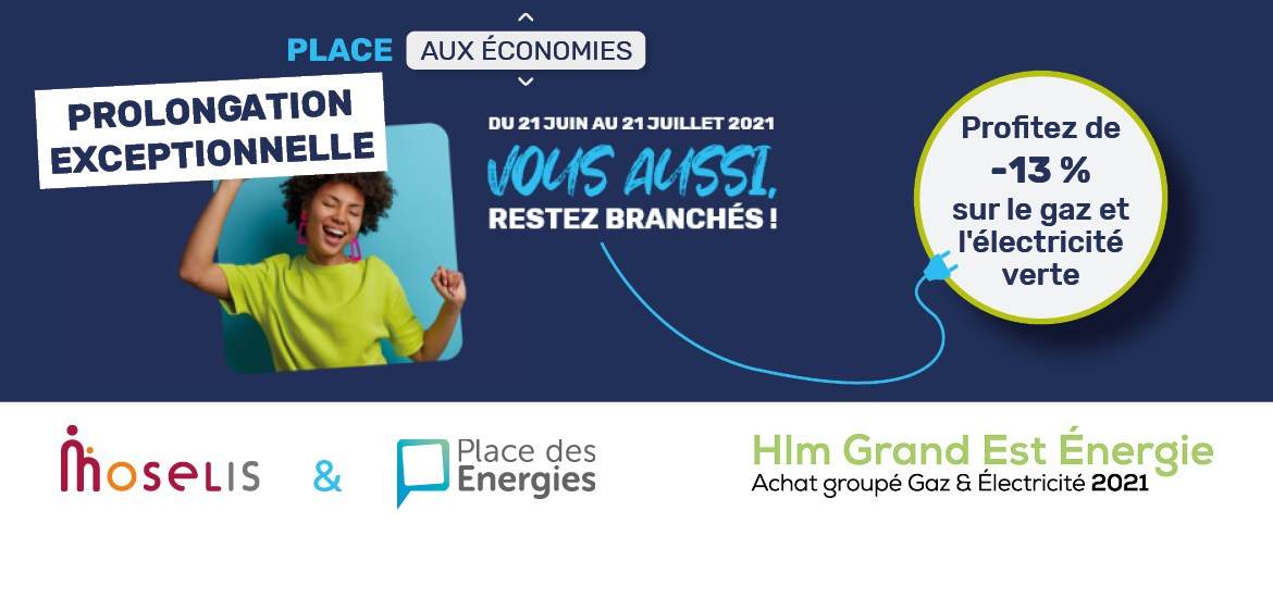Moselis vous fait profiter depuis le 21 juin dernier d’une réduction* de 13 % sur vos factures de gaz** et d’électricité verte pendant 1 an, en association avec Place des Energies, courtier spécialisé dans l’organisation d’achats groupés d’électricité et de gaz.