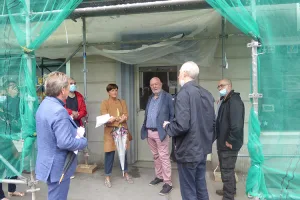 Eric Michel, Directeur général de Moselis, Jean-François Kubicky, Chargé de programmes immobiliers, et Djamal Boukebbous, gérant d’immeubles, ont fait visiter le chantier à Roger Schreiber, Adjoint au Maire délégué à l’Urbanisme, et Danielle Bertrand, Conseillère Municipale déléguée aux séniors
