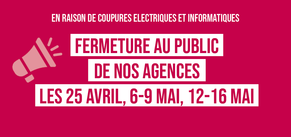 En raison de coupures électriques et informatiques, nos agences seront fermées au public aux dates suivantes :