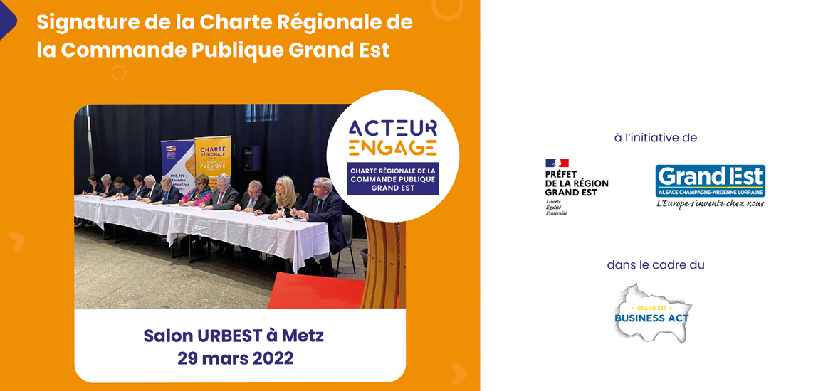 Initiée par la Région Grand Est et la Préfecture de la Région Grand Est dans le cadre du #BusinessActGrandEst, et co-construite avec 20 acheteurs publics, la Charte vise à faire de la commande publique un levier de relance et développement économique.