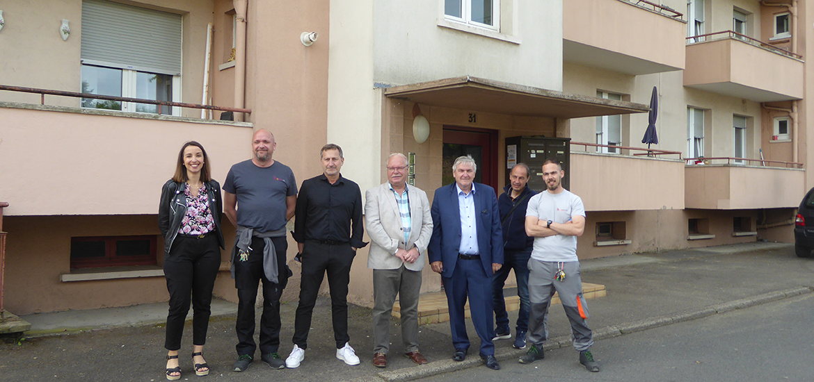 Les quatre immeubles Moselis de la rue Jean-Burger à Stiring-Wendel ont fait l’objet d’une visite officielle mi-mai. Le Président de Moselis, Constant Kieffer, et le Maire de la Ville, Yves Ludwig, se sont rendus sur place pour découvrir en détail les futurs travaux de réhabilitation qui seront lancés à la rentrée.