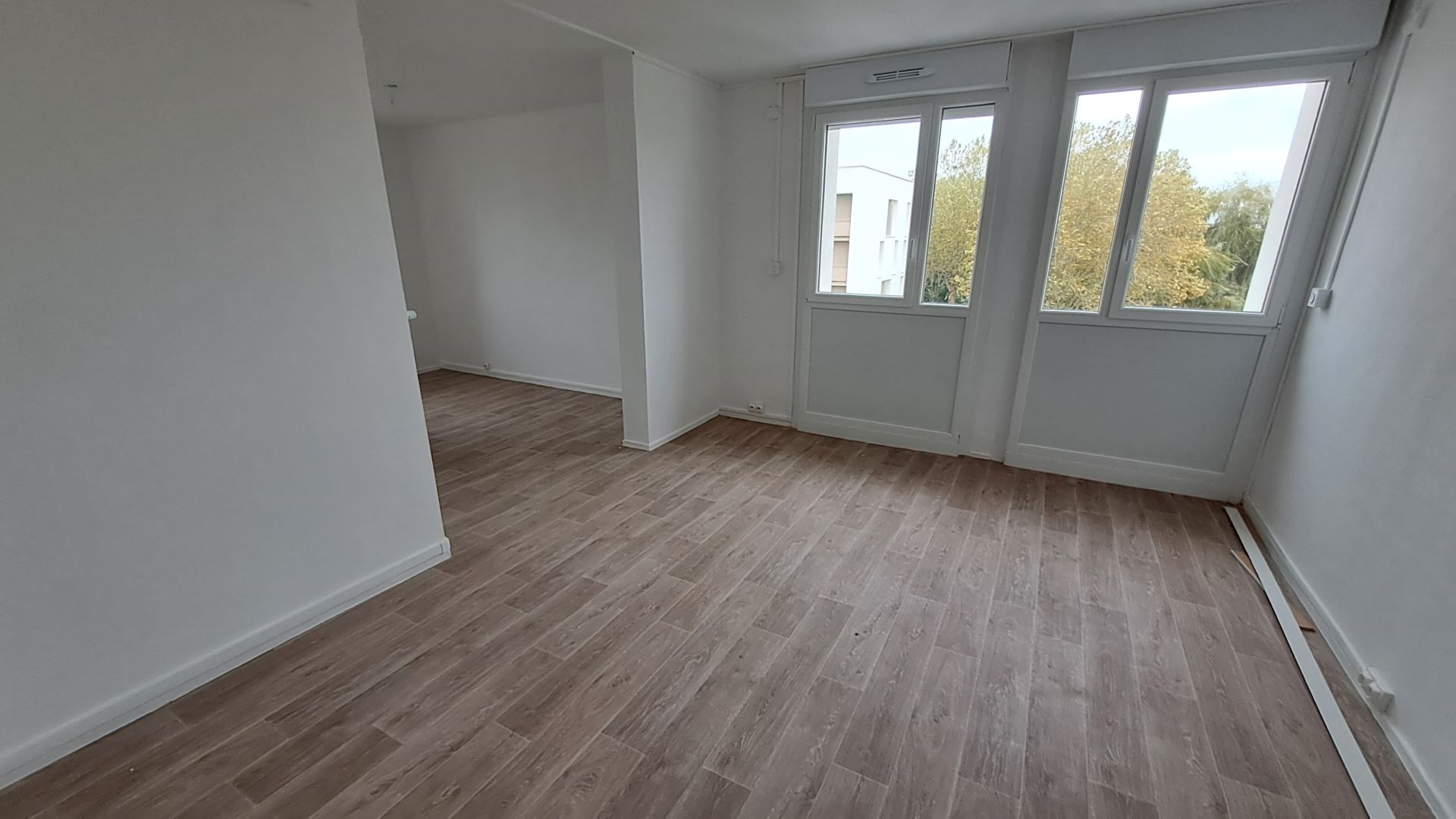 Le logement comprend : un double séjour, une cuisine indépendante fonctionnelle, deux chambres (possibilité de faire une troisième chambre), placards, une salle de bain et des toilettes séparés, une place de stationnement dans le parking collectif.